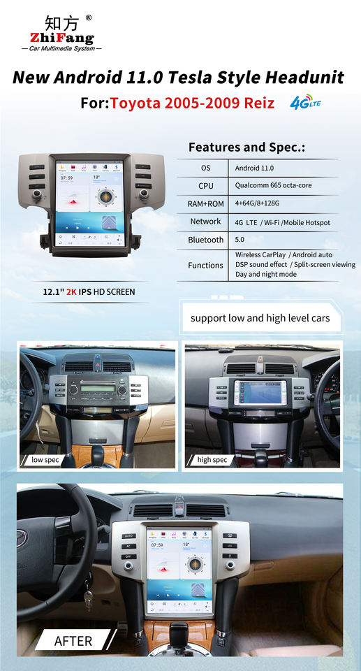13.0แอนดรอยด์8 + 128GB สำหรับ Toyota 2005-2009 Reiz เครื่องเล่นมัลติมีเดีย3.0L สเตอริโอรถยนต์ DVD 2K 4G CarPlay