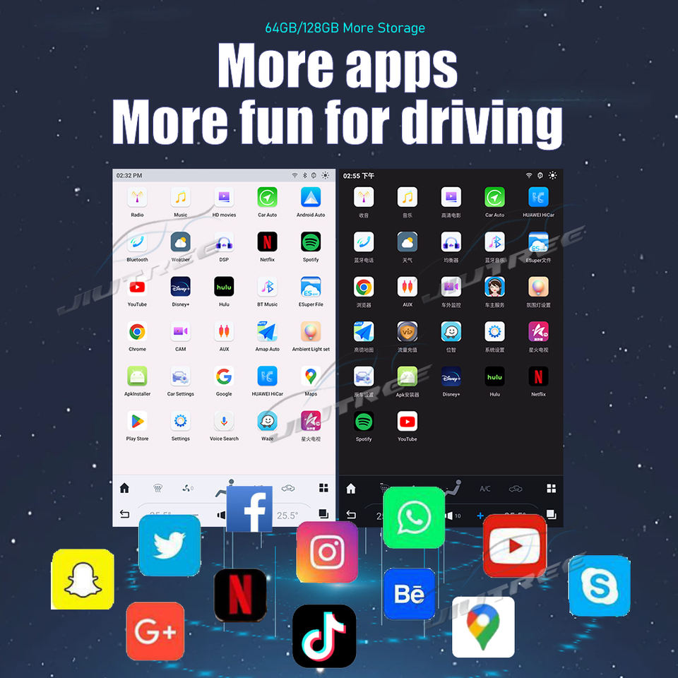 GPS, สเตอริโอ, TPMS, RGB, เครื่องขยายเสียง, OBD2, DSP, คาร์เพลย์, DVB +, Mirror Link, Android Auto, ไมโครโฟนในตัว, หน้าจอแยก, ควบคุมพวงมาลัยรถยนต์, ลำโพงในตัว