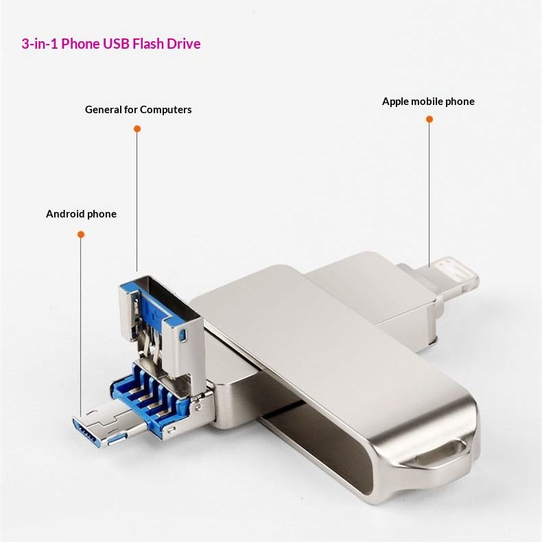 คอมพิวเตอร์แอนดรอยด์ โทรศัพท์มือถือ ดีไซน์โลหะหมุนได้ อินเทอร์เฟซ USB 3.0 แฟลชไดรฟ์ OTG USB