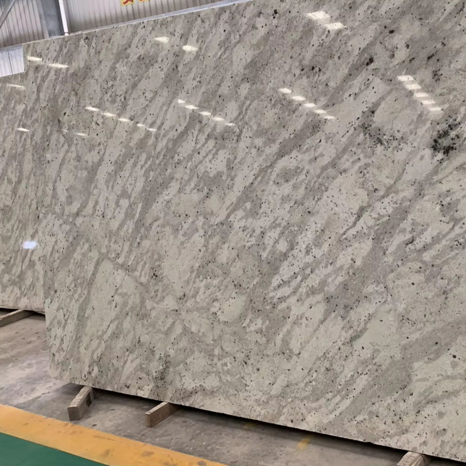 Andromeda เคาน์เตอร์และกระเบื้องหินแกรนิตขัดเงาสีขาวแผ่นใหญ่ความแข็งแรงสูงสำหรับพื้นที่อินเดียที่ทันสมัยวิลล่าโรงพยาบาล