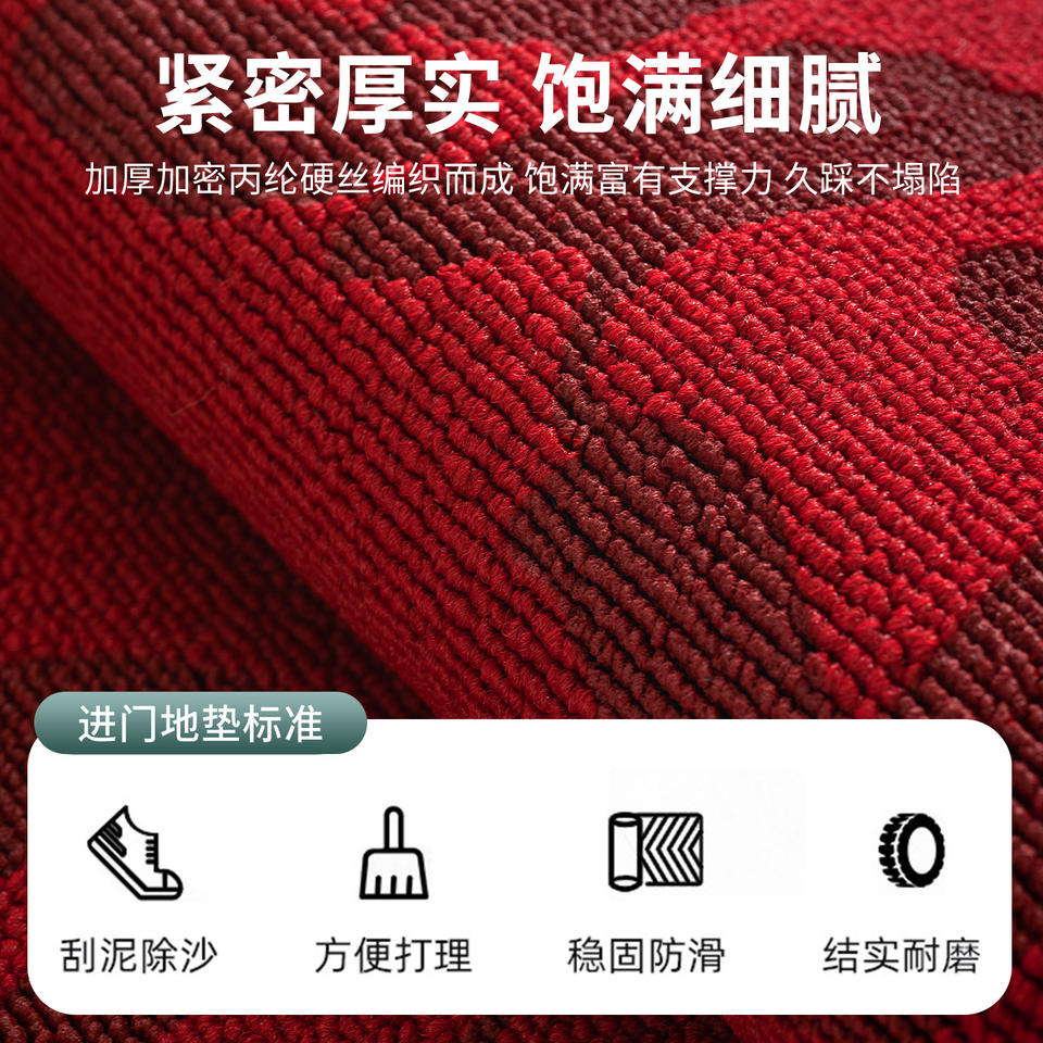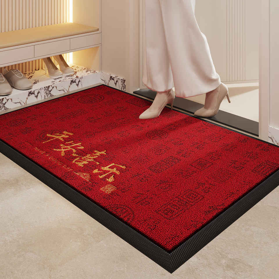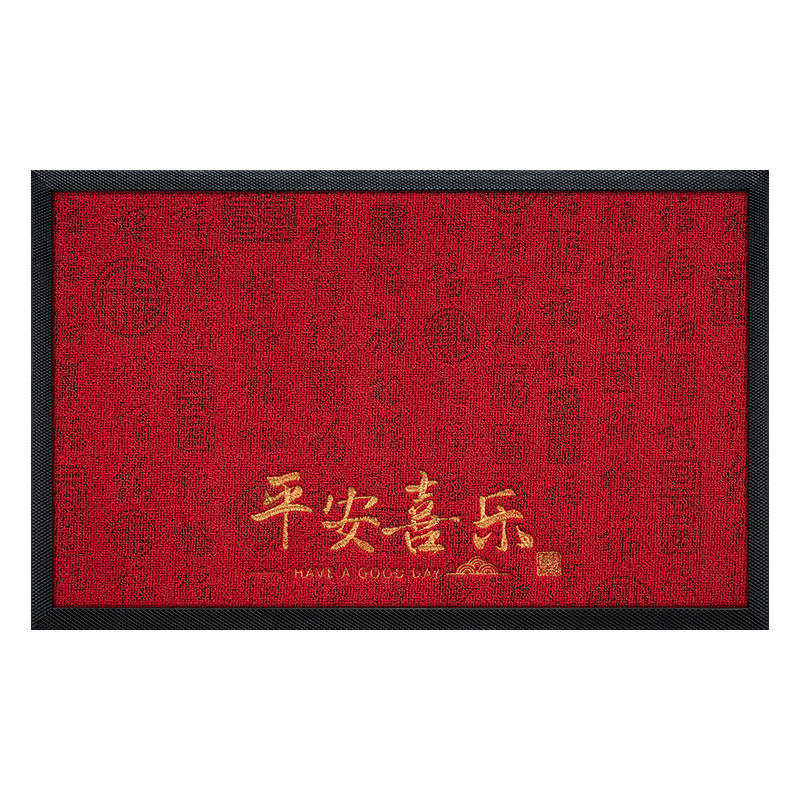 พรมเช็ดเท้าหน้าประตูสีแดง Anfu Yannian รูปทรงสี่เหลี่ยมผืนผ้า ทำจากเส้นใยโพลีเอสเตอร์ ปักลายด้วยเลเซอร์ สำหรับใช้ในบ้าน ลวดลายแปลกใหม่ ทำความสะอาดง่าย