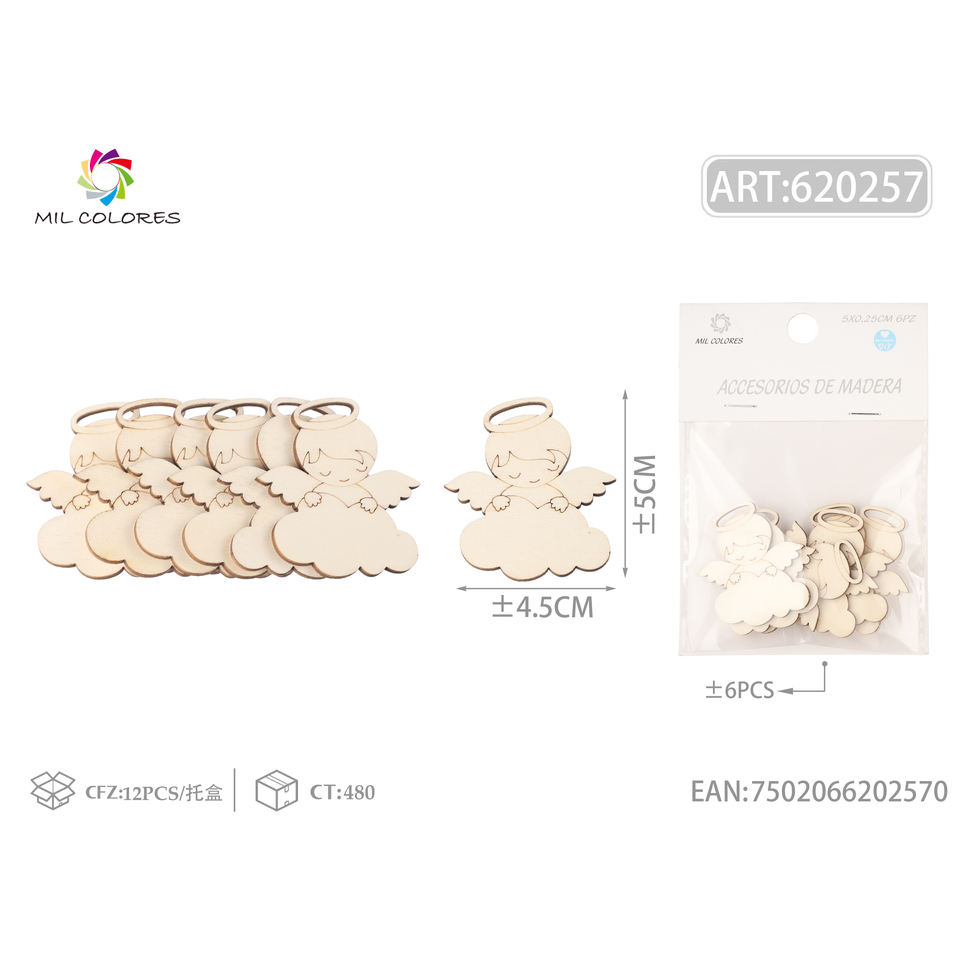 Angel Boy Folk Art Wood Chip Accessories Nautical Painted Pendant 5cm*6pc/card Laser Souvenir Decoration Folk Art Model Painting