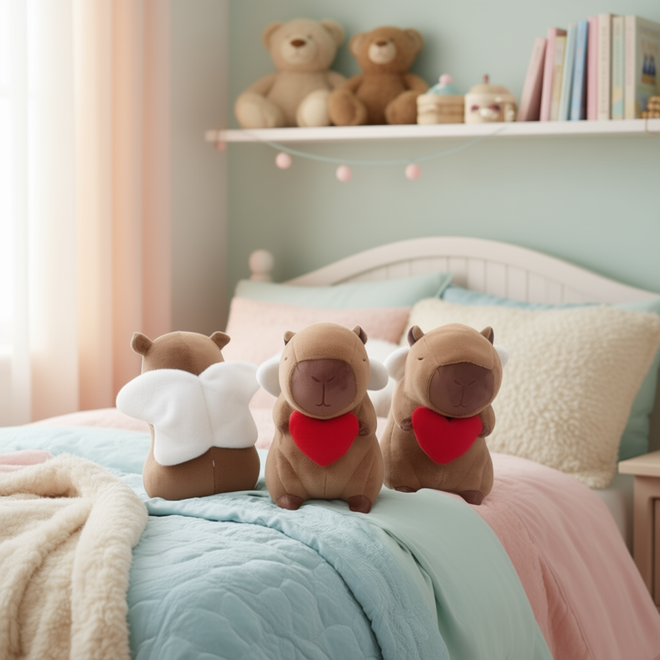 ตุ๊กตาคาปิบาร่านุ่มนิ่ม Ruobing Angel Love สำหรับเด็ก บรรจุใยฝ้าย PP นุ่มสบาย ของขวัญวันเกิด ของเล่นตุ๊กตาสำหรับเด็กผู้ชายและเด็กผู้หญิง