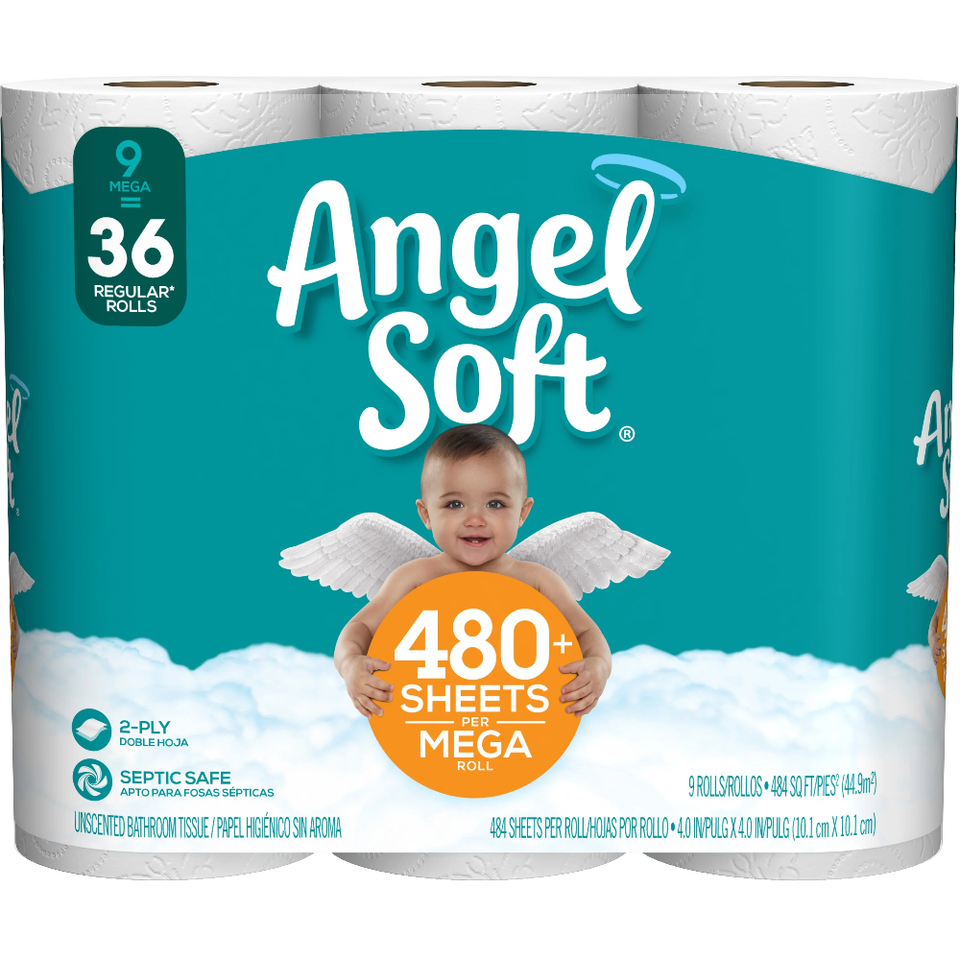 กระดาษชำระแองเจิลซอฟท์ อีโค่เฟรนด์ลี่ ซึมซับดี ย่อยสลายได้ ผลิตจากเยื่อไผ่ 2 ชั้น ปลอดภัยสำหรับบ่อส้วม ไม่มีกลิ่น บรรจุ 9 ม้วน