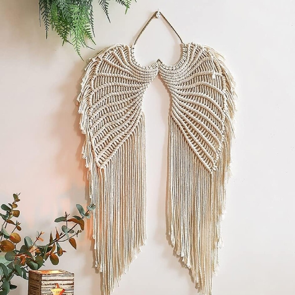 ปีกนางฟ้า macrame แขวนผนัง Boho การตกแต่งทางจิตวิญญาณศิลปะติดผนังที่ทำด้วยมืออย่างหรูหรามีจำหน่ายในราคาขายส่ง
