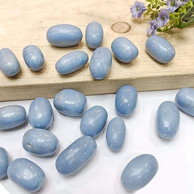 Angelite Natural Polished Tumble Stones Semi Precious Healing Crystals for Chakra Balancing Reiki Energy Work
