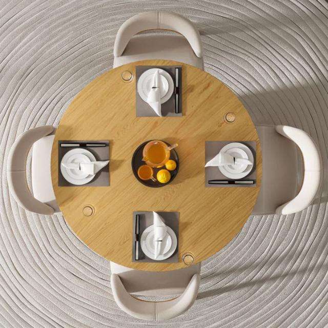 Angjelin โต๊ะรับประทานอาหารไม้เนื้อแข็งทรงกลมทันสมัยสำหรับการประชุมเชิงปฏิบัติการอพาร์ทเม้นและสวนเฟอร์นิเจอร์บ้านอบอุ่นสำหรับการชุมนุมโรงแรมบ้านไร่