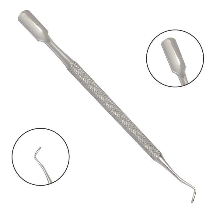 ที่ดันหนังกำพร้าเล็บปลายแบนแบบมุมฉาก ทำจากสแตนเลส เครื่องมือดูแลเล็บแบบสองด้าน สำหรับทำความสะอาดเล็บอย่างแม่นยำ