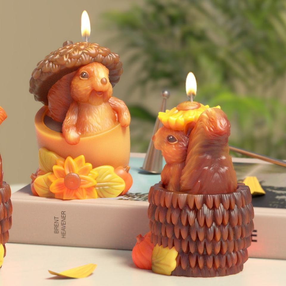 แม่พิมพ์เทียนรูปสัตว์ UNIMOULD ซิลิโคน 3 แบบ กระรอกน่ารัก 3 มิติ DIY เป็นมิตรกับสิ่งแวดล้อม ปลอดภัยสำหรับเครื่องล้างจาน สำหรับเทียนหอมตกแต่งบ้าน