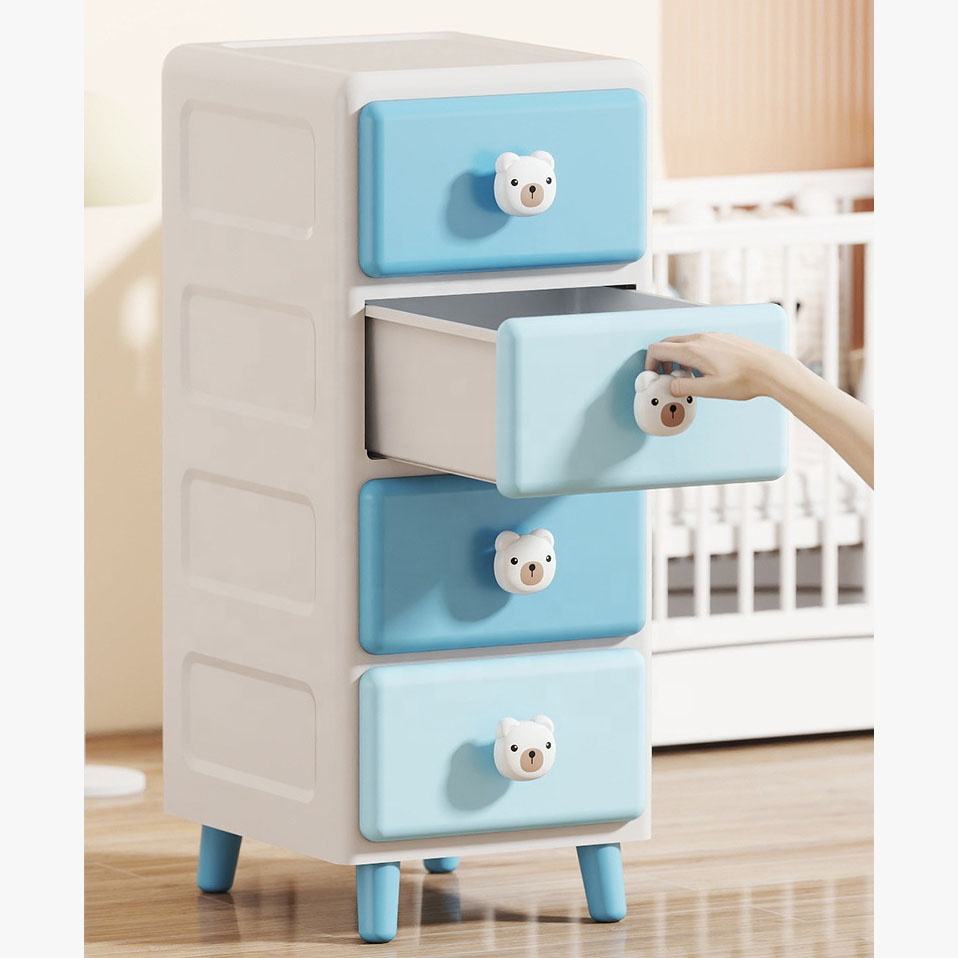 ตู้เก็บของพลาสติกแบบพับได้ 4 ชั้น สีฟ้า ลายสัตว์ สำหรับห้องนอนและห้องนั่งเล่น