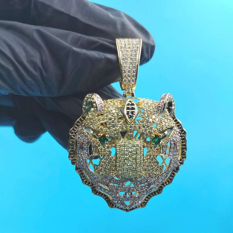Animal Lovers Iced Out Tiger Face Moissanite Round Diamond Gold Finish Pendant With 925 Silver Fine Jewelry Pendants & Charms