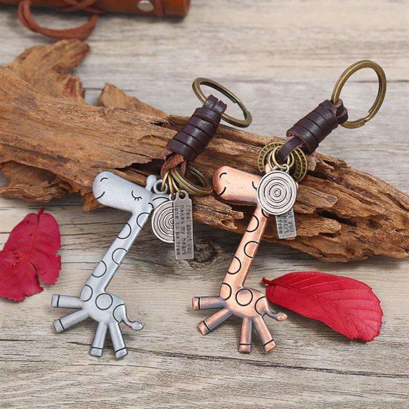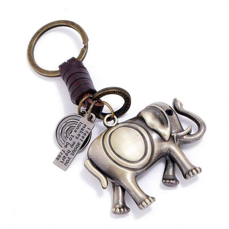 Animal Metal Key Chains Pendant Vintage Handmade Leather Keyring Bear Elephant Alloy Keychain for Men Car Key Accessory