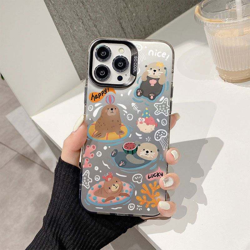 เคสโทรศัพท์ TPU ใสลายการ์ตูนปาร์ตี้สัตว์ สำหรับ iPhone 16 15 14 13 11 Pro Max Plus สีดำ สีเงิน