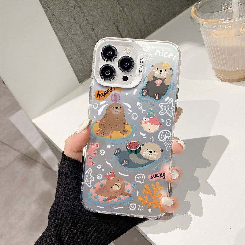 เคสโทรศัพท์ลายการ์ตูนใส TPU สำหรับ iPhone 16 11 Pro Max Plus สีดำเงิน ลายปาร์ตี้สัตว์