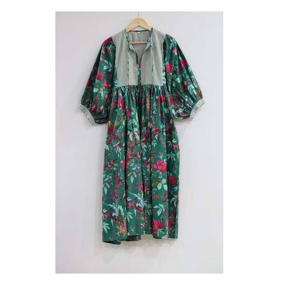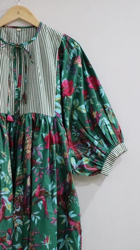 Animal Print Midi Dress, Mini Dress, Jungle Print Long Block Print Dress, Deep Neck with String Closer, Stripe Prints Neck Line