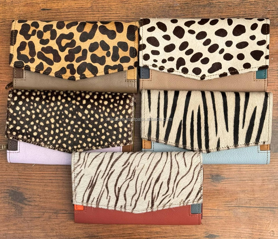 กระเป๋าใส่บัตรเครดิตหนังรีไซเคิลหลากสีพิมพ์ลายสัตว์สำหรับผู้หญิงอุปกรณ์เสริมสำหรับการเดินทางกระเป๋าคลัทช์หนังสีสันสดใสสุดหรู