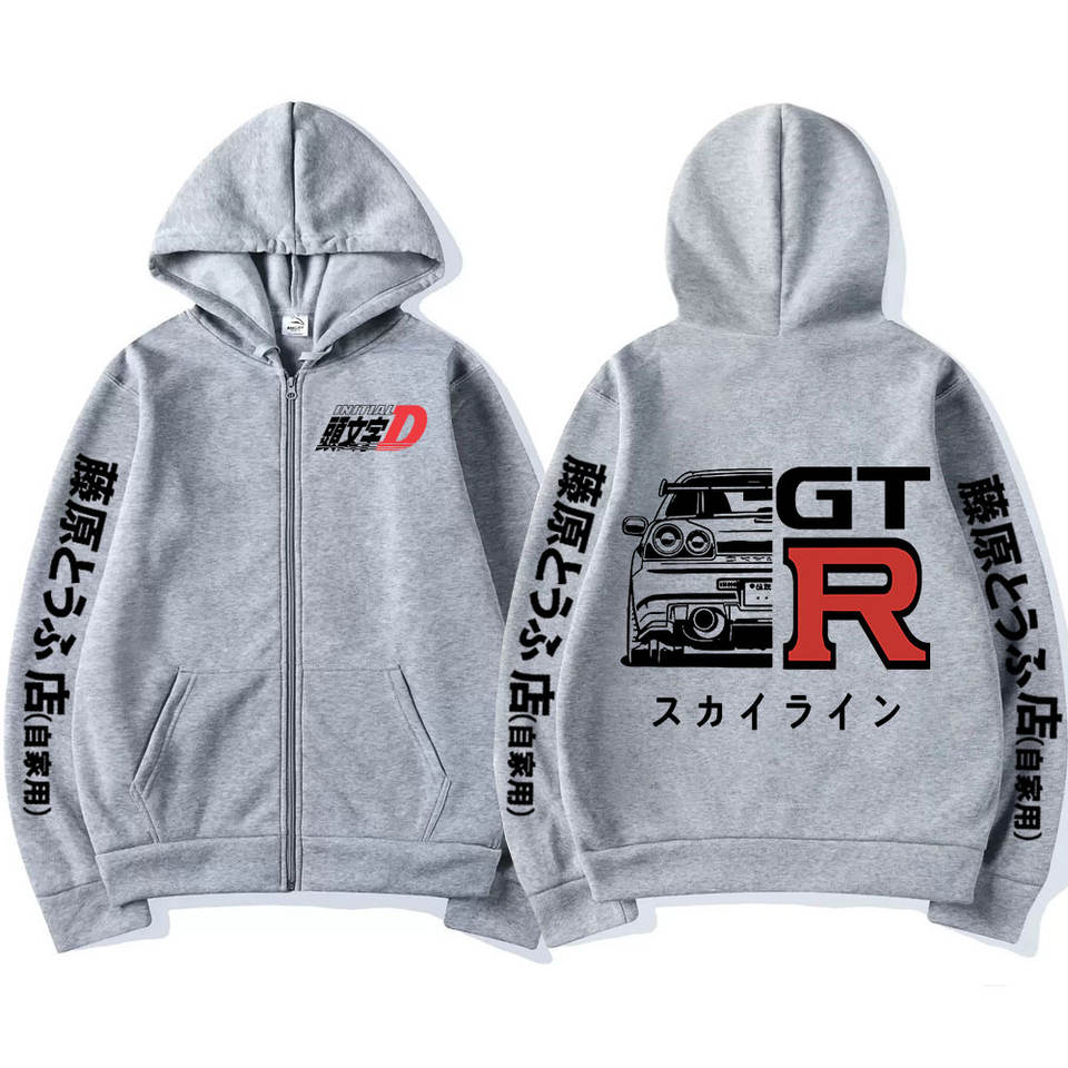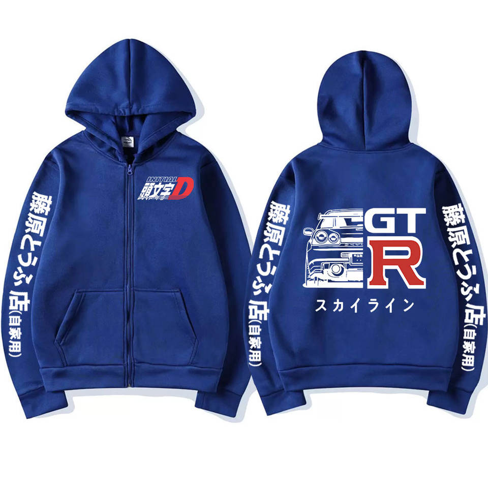 เสื้อฮู้ดซิปอนิเมะ AE86 Initial D ลายซับลิเมชั่น สไตล์วินเทจลำลอง เสื้อสเวตเชิ้ตซิป R34 Skyline GTR JDM ลายมังงะ เสื้อฮู้ดโอเวอร์ไซส์