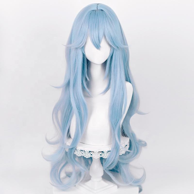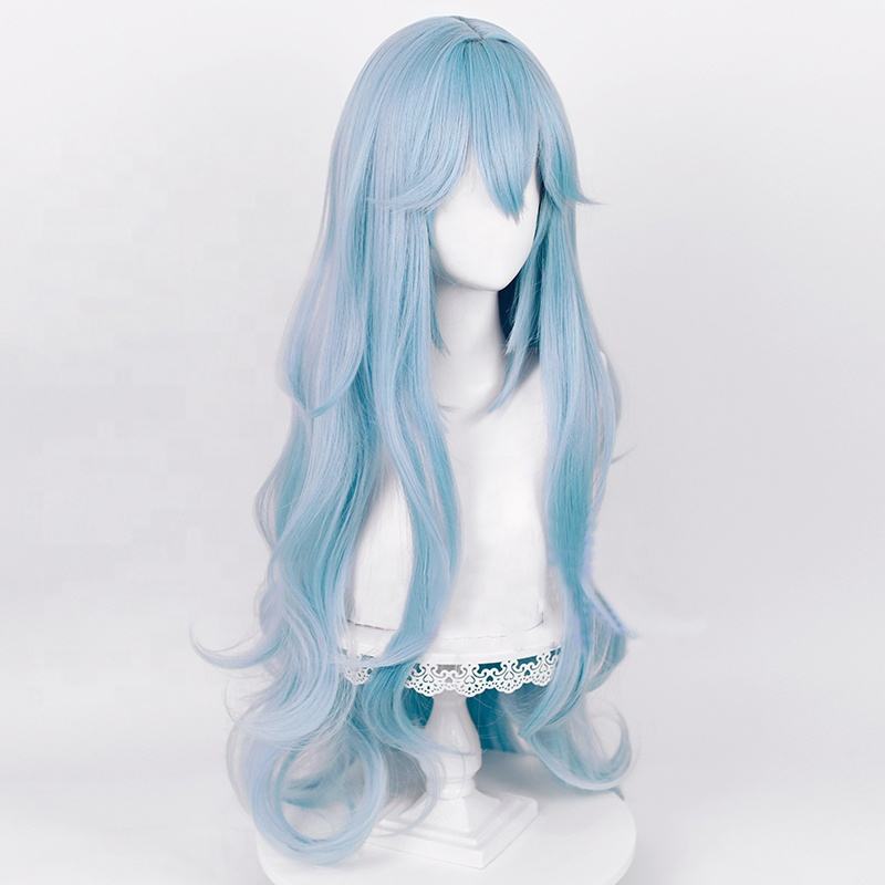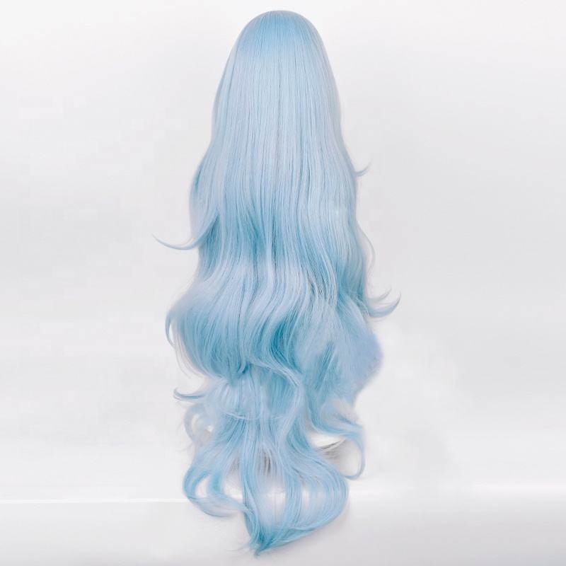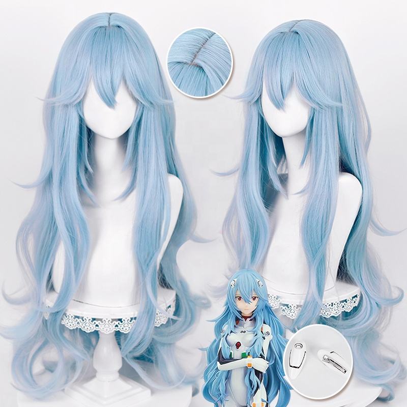 วิกผมคอสเพลย์อนิเมะ ไอยานามิ เรย์ วิกผมสังเคราะห์ทนความร้อน วิกผมยาวหยิกจากเรื่องเรสเซิลท์ ออฟ เอวานเกลียน (EVA) ขายส่ง 100 ซม. สีฟ้า 1 ชิ้น