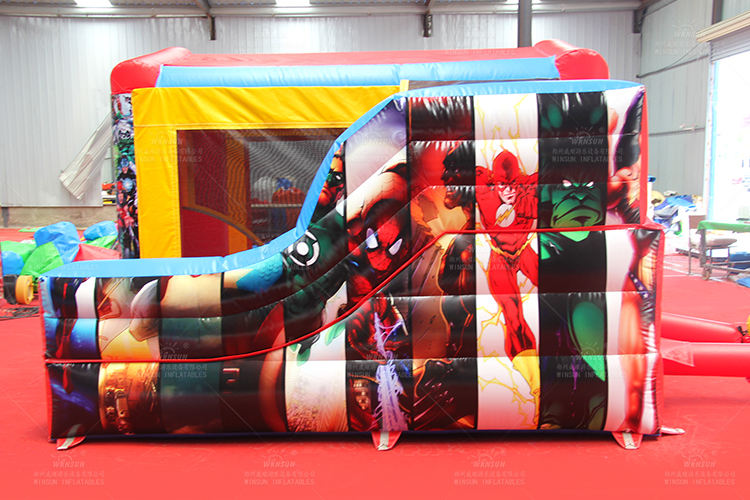 บ้านลมอนิเมะแบบคอมโบพร้อมสไลเดอร์และแทรมโพลีน ได้รับการรับรองมาตรฐาน CE กันไฟและกันน้ำ ติดตั้งง่าย
