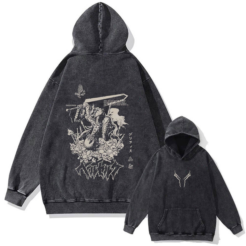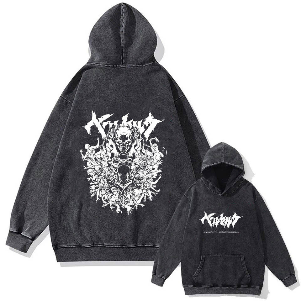 Product name:anime DTG Print Black Acid Wash Oversized Hoodie for Men