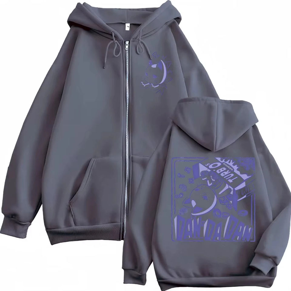 เสื้อฮู้ดซิปพิมพ์ลายสองด้านลายอนิเมะ Dandadan Turbo Granny สไตล์มังงะญี่ปุ่น เสื้อสเวตเชิร์ตแบบซิปสำหรับผู้ชายและผู้หญิง เสื้อพูลโอเวอร์ลำลอง