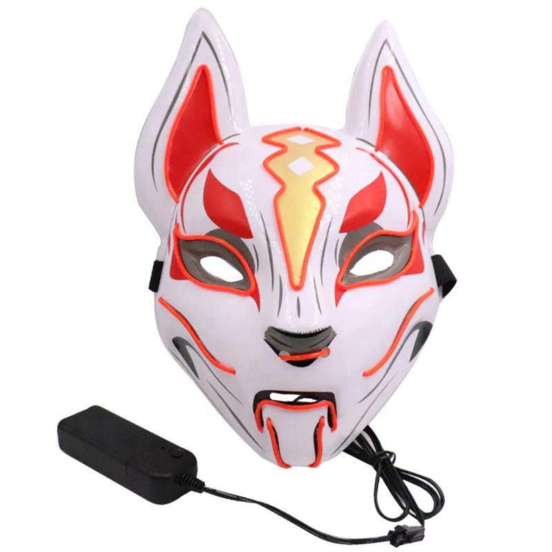 หน้ากากจิ้งจอกญี่ปุ่นแบบอนิเมะ พร้อมไฟนีออน LED สำหรับคอสเพลย์ งานปาร์ตี้ฮาโลวีน งานเรฟ หน้ากาก LED สำหรับเต้น ดีเจ คอสตูมเพย์เดย์ อุปกรณ์ประกอบฉาก