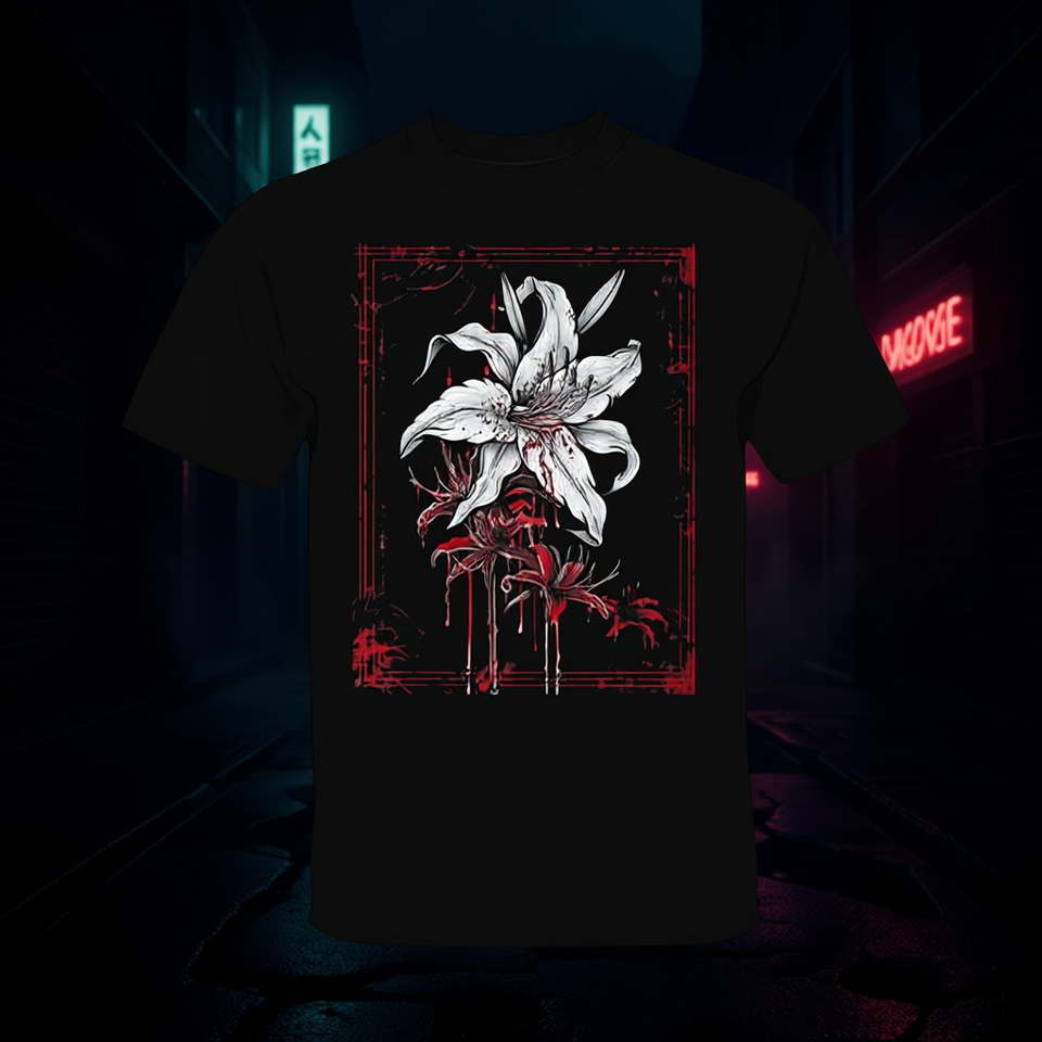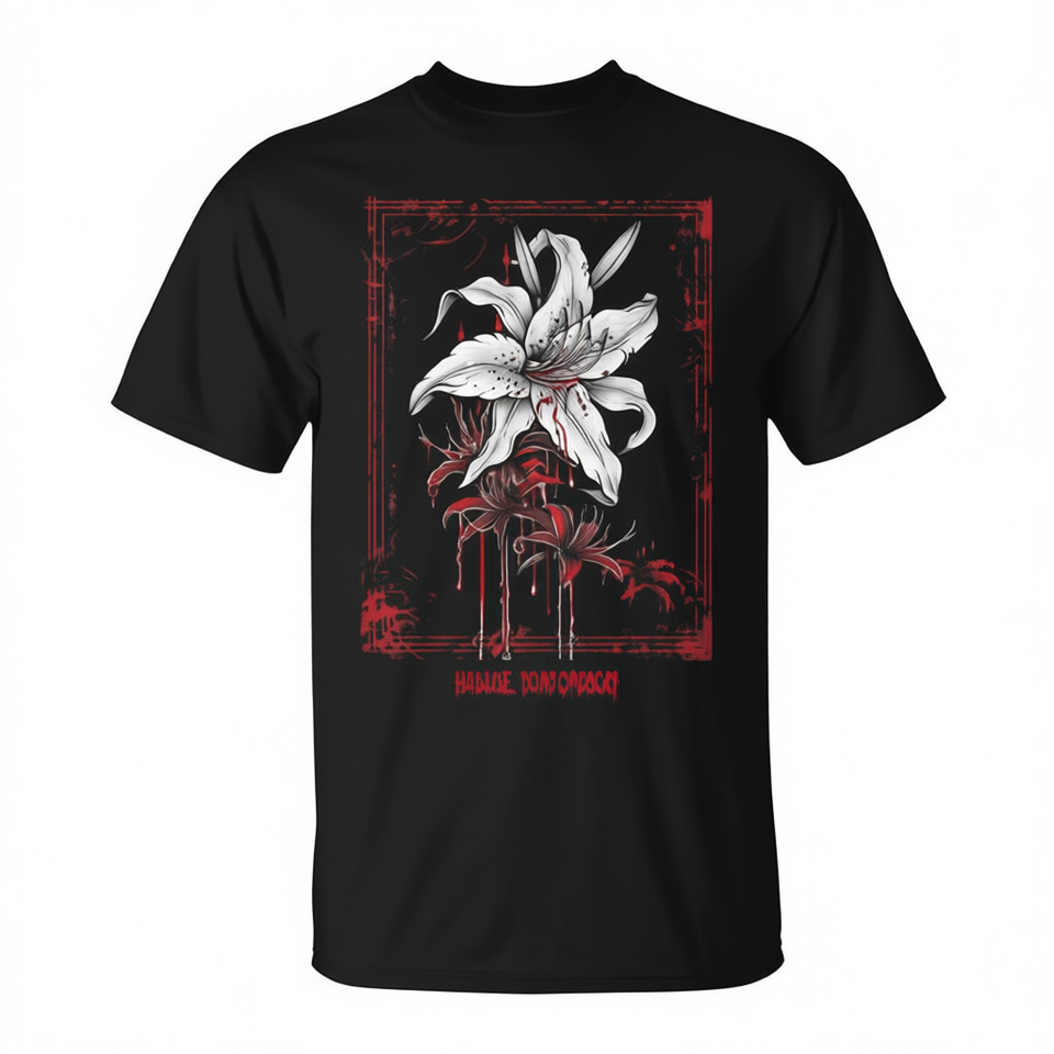 เสื้อยืดลายมังกรญี่ปุ่นอะนิเมะ Goth สีดำใช้ได้ทั้งชายและหญิงคอกลมแขนสั้นไซส์ M L XL XXL