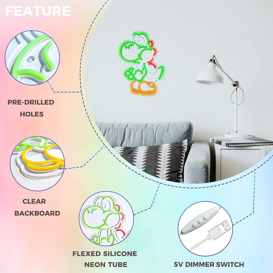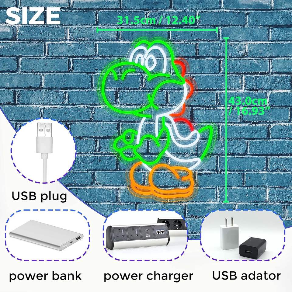 ป้ายไฟนีออนลายอนิเมะ ไดโนเสาร์ ไฟนีออน LED สำหรับตกแต่งผนังห้องนอน ห้องเกม สไตล์มาริโอ
