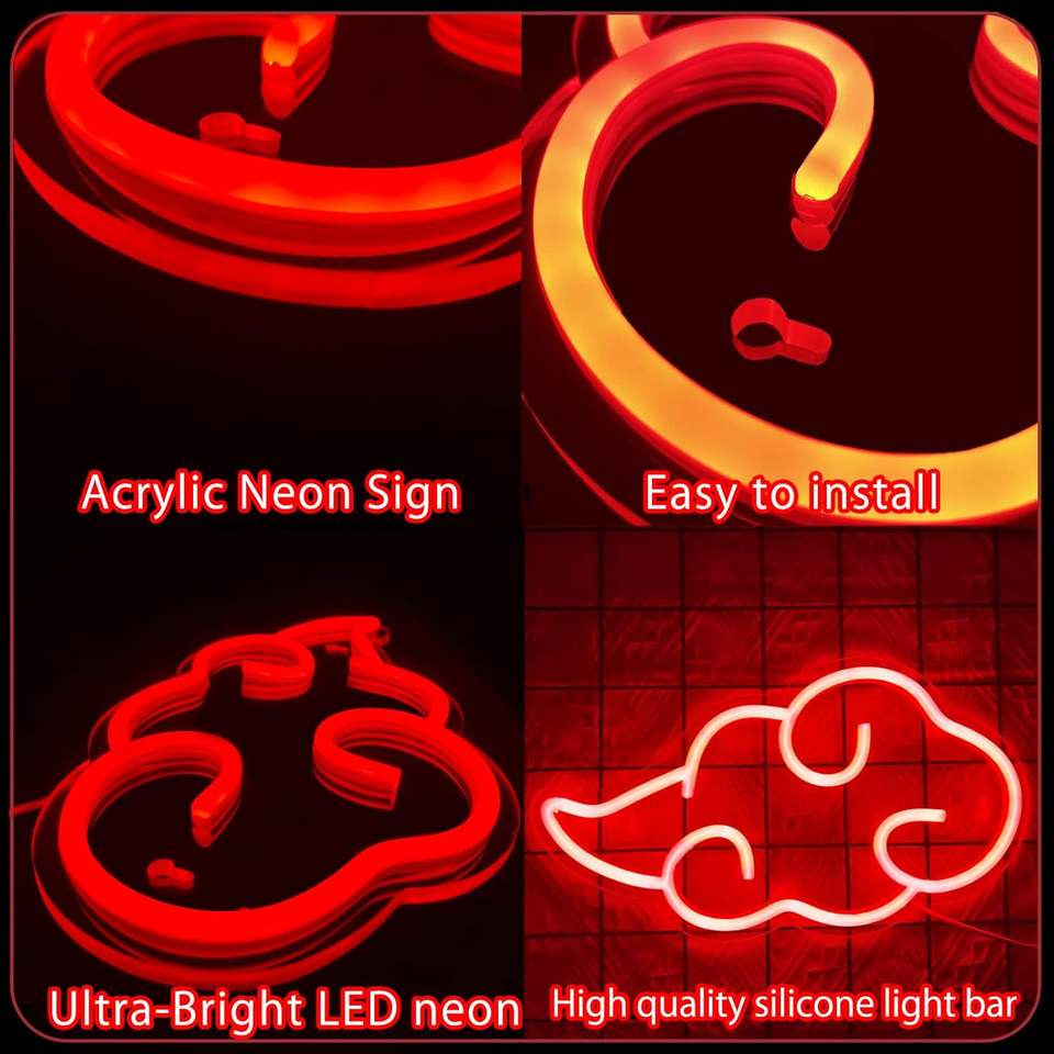 ป้ายไฟนีออนลายอนิเมะ รูปเมฆสีแดง ไฟ LED ปรับความสว่างได้ ใช้พอร์ต USB ตกแต่งผนังบ้าน ห้างสรรพสินค้า ห้องนอน ห้องเล่นเกม ห้องแมนเคฟ งานปาร์ตี้ ขนาด 12x7 นิ้ว