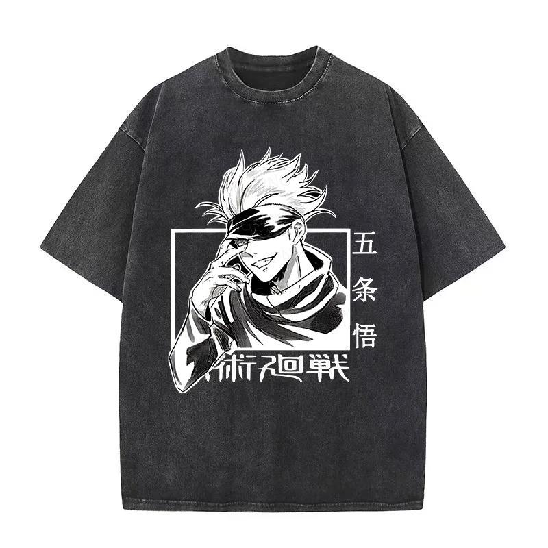 เสื้อยืดคอกลมแขนสั้นอะนิเมะโอเวอร์ไซส์สำหรับผู้ชายพิมพ์ลายเสื้อยืดผ้าฝ้ายซัก Y2k สำหรับผู้หญิงและผู้ชาย