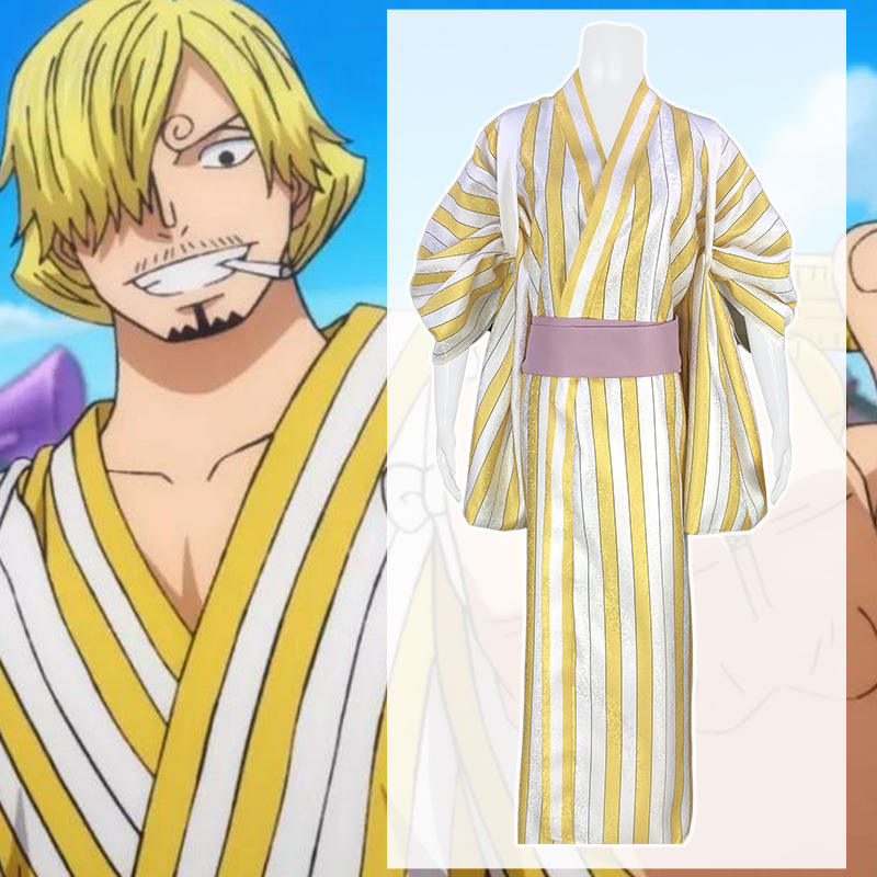 ชุดคอสเพลย์อนิเมะญี่ปุ่นยูกาตะสีเหลืองลายทางสำหรับผู้ใหญ่