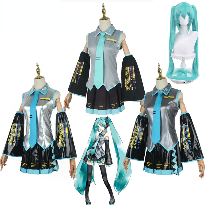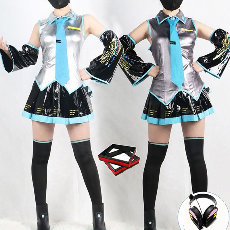 ชุดคอสเพลย์อนิเมะ Vocaloid สำหรับมือใหม่ ชุดมิคุหญิงสไตล์อนาคต ชุดเดรสยาวปานกลางแบบญี่ปุ่น สำหรับงานปาร์ตี้ฮาโลวีน พร้อมวิกผมคอสเพลย์ชาย ชุดครบเซ็ต