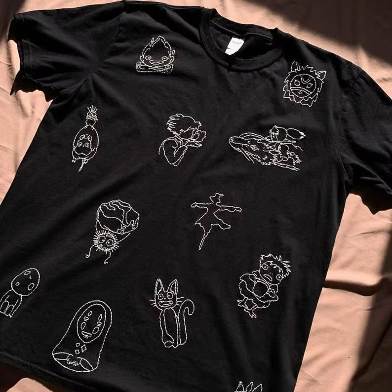 เสื้อยืดอนิเมะลายปักมือ งานแฮนด์เมด ลายกิบลิ โทโทโร