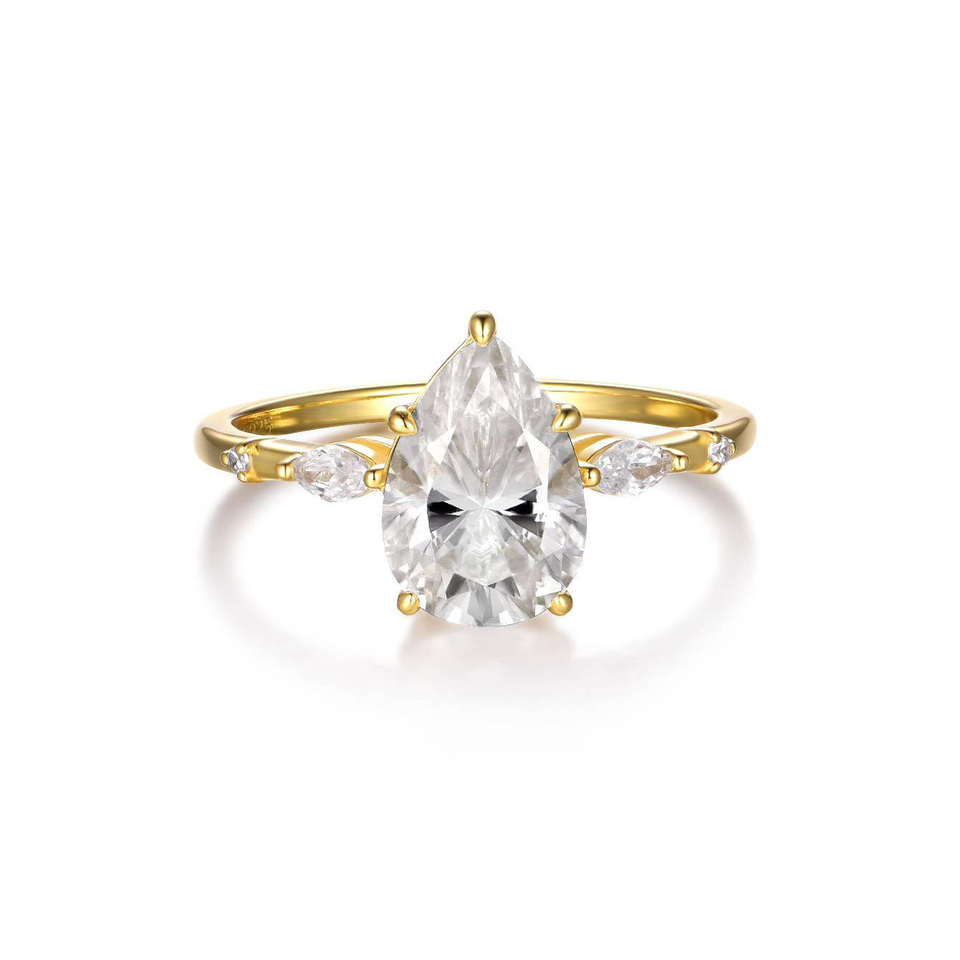 แหวนแต่งงานเพชร Aniva IGI 2 กะรัต เพียร์คัท สำหรับงานหมั้น ตัวเรือนเงินแท้ 925 ชุบทอง สไตล์ชาติพันธุ์สำหรับผู้หญิง