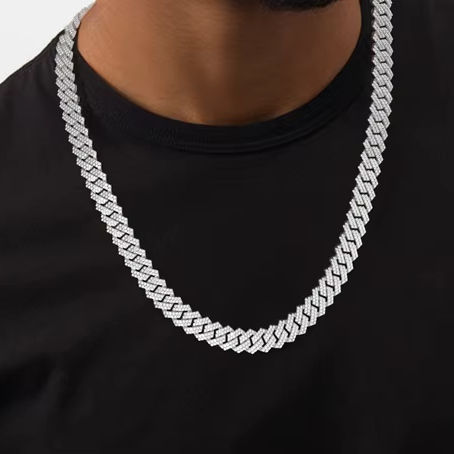 สร้อยคอทองคำ 10k แบบ Cuban Links ของ Aniva Jewels ความยาว 24 นิ้ว ขนาด 14 มม. ประดับเพชรเลี้ยงในห้องปฏิบัติการแบบ Iced Out สีขาวทอง