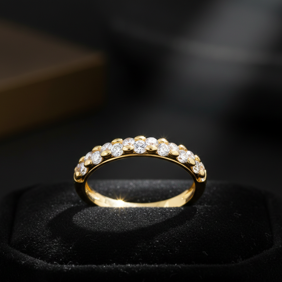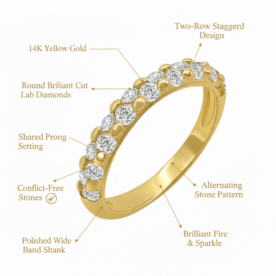 แหวนแต่งงาน Aniva RNB001 ทองคำแท้ 14K ดีไซน์แบบสองแถวประดับเพชรเลี้ยงในห้องปฏิบัติการ รับรองโดย IGI ของขวัญสำหรับผู้หญิง