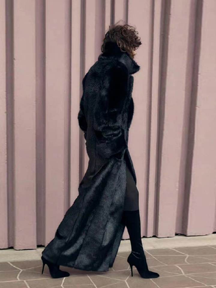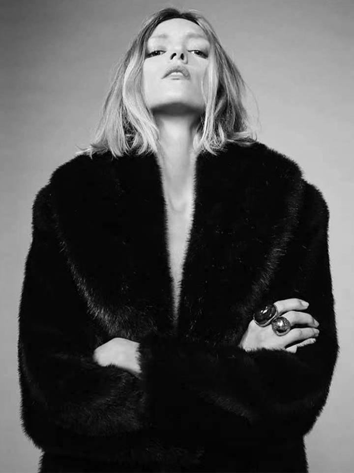 เสื้อโค้ทขนเฟอร์เทียมหรูหราสไตล์ Anja Rubik - ความยาวปานกลาง ดีไซน์ขนแกะเทียม คอปกแบบผ้าคลุมไหล่และคอปกขนาดใหญ่