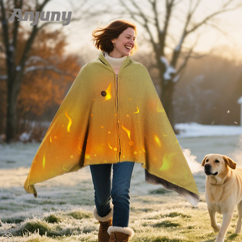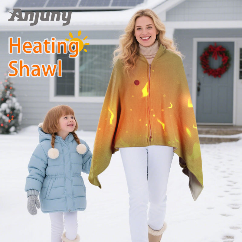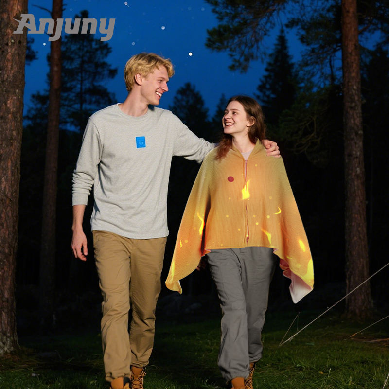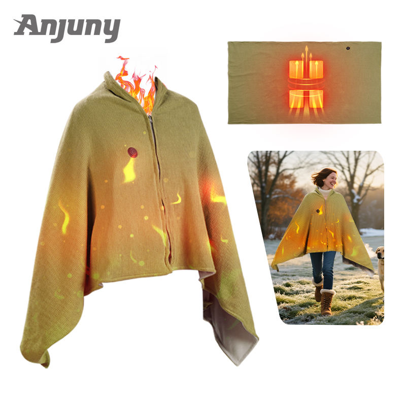 ผ้าคลุมไหล่ไฟฟ้าอุ่นร้อนกลางแจ้ง Anjuny แบบพกพา สวมใส่สบาย อบอุ่น ควบคุมอุณหภูมิได้ 3 ระดับ ผลิตจากโพลีเอสเตอร์แบบเย็บติดกัน