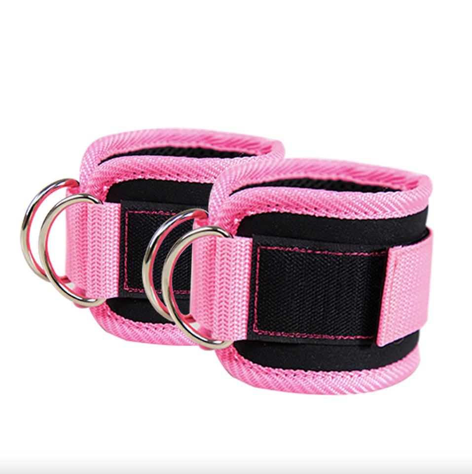 สายรัดข้อเท้าสำหรับเครื่องเคเบิล (แพ็ค2ชิ้น),สายรัดข้อเท้าหุ้มด้วยยางเทียมพร้อม D-Ring (รวมกล่องพกพาฟรี)