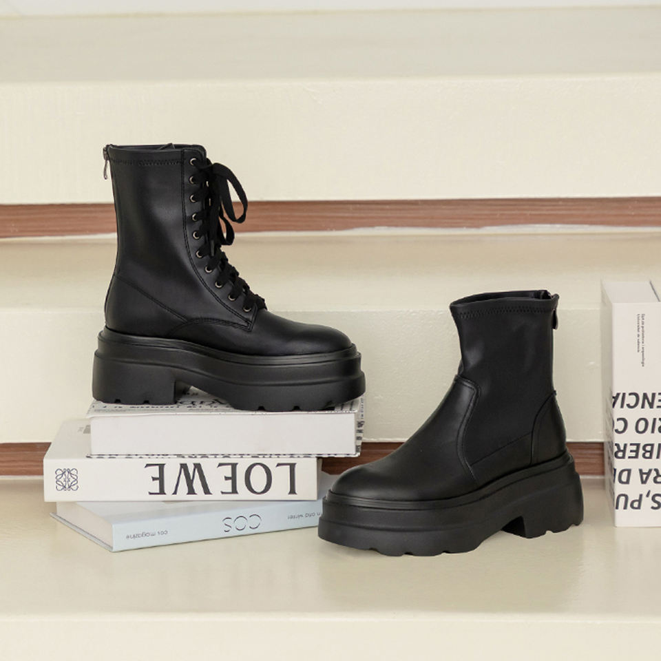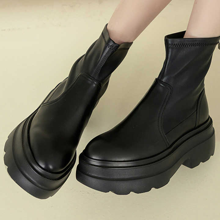 รองเท้าบูทข้อเท้าแบบรัดซิปสำหรับผู้หญิงของ Ann'S ส้นหนา 7.5 ซม. พื้นหนา ส้นหนา หนังแท้ บุรองเท้าด้านในด้วยวัสดุกันกระแทก กันน้ำ