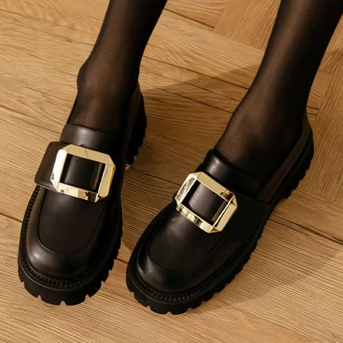 รองเท้าโลฟเฟอร์สตรีแบบสังเคราะห์ของ Ann'S พื้นรองเท้าด้านบนแบบหนา 5 ซม. บุส้นรองเท้าด้วยยาง พื้นรองเท้าด้านนอกทำจากยาง บุผ้าฝ้าย