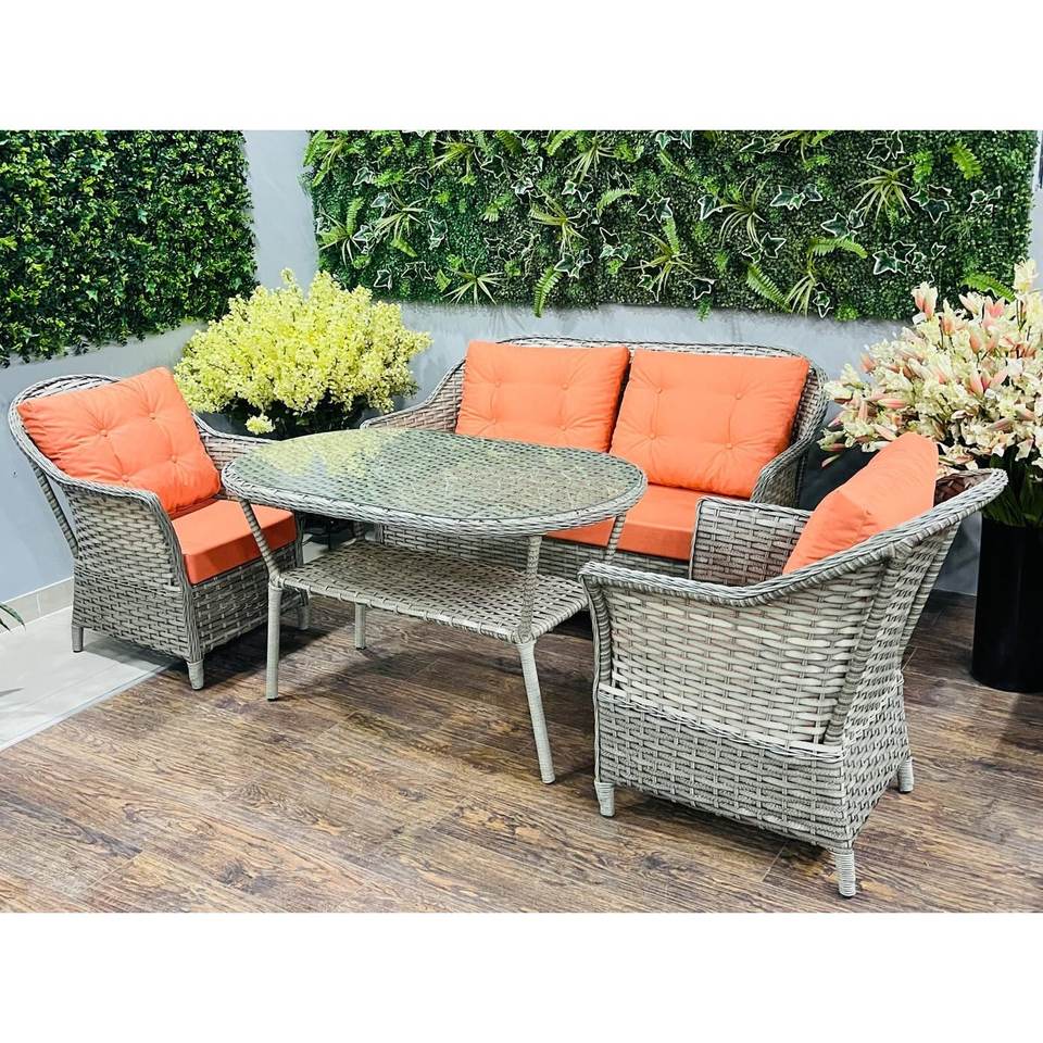 ชุดเก้าอี้และโซฟากลางแจ้งพร้อมโต๊ะกาแฟ, อุปกรณ์ตกแต่งสวนพร้อมโต๊ะกาแฟทำจากหวายแอนทราไซต์