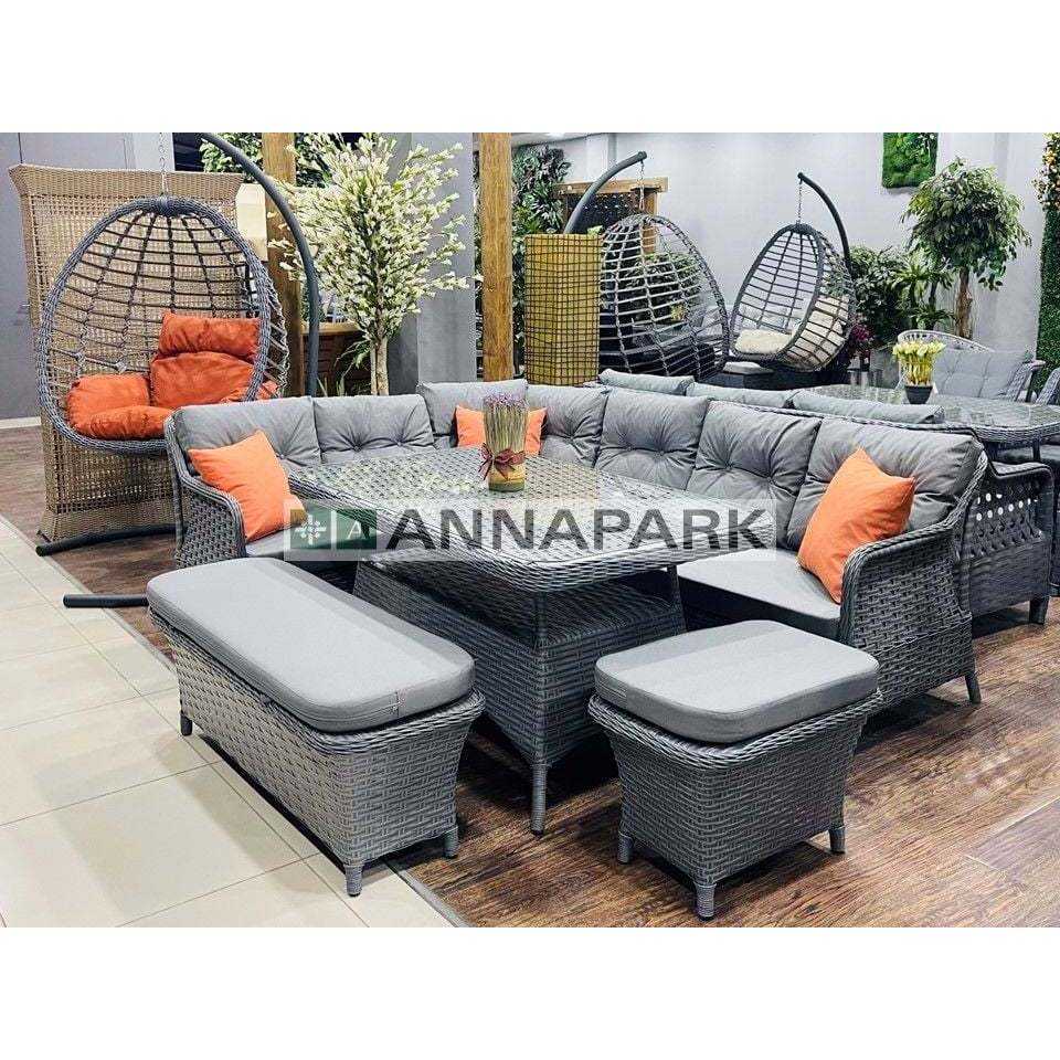 Annapark Marbella ชุดเฟอร์นิเจอร์หวายแอนทราไซต์กลางแจ้งสวนและระเบียงกลุ่มที่นั่งอลูมิเนียมกรอบโลหะ PE วัสดุโรงแรม