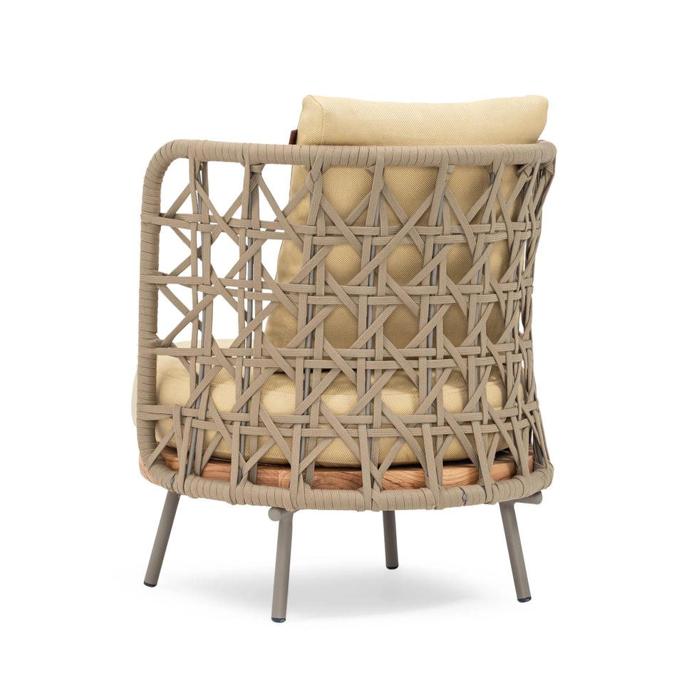 Annette Modern Lounge Chair for Villa Aluminum Frame Woven Rattan with Solid Wood Bottom & Thick Cushions Natural Finish