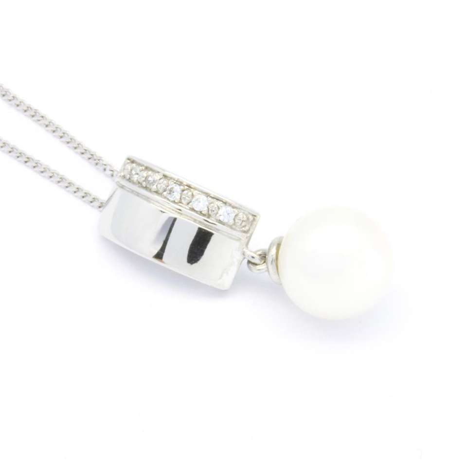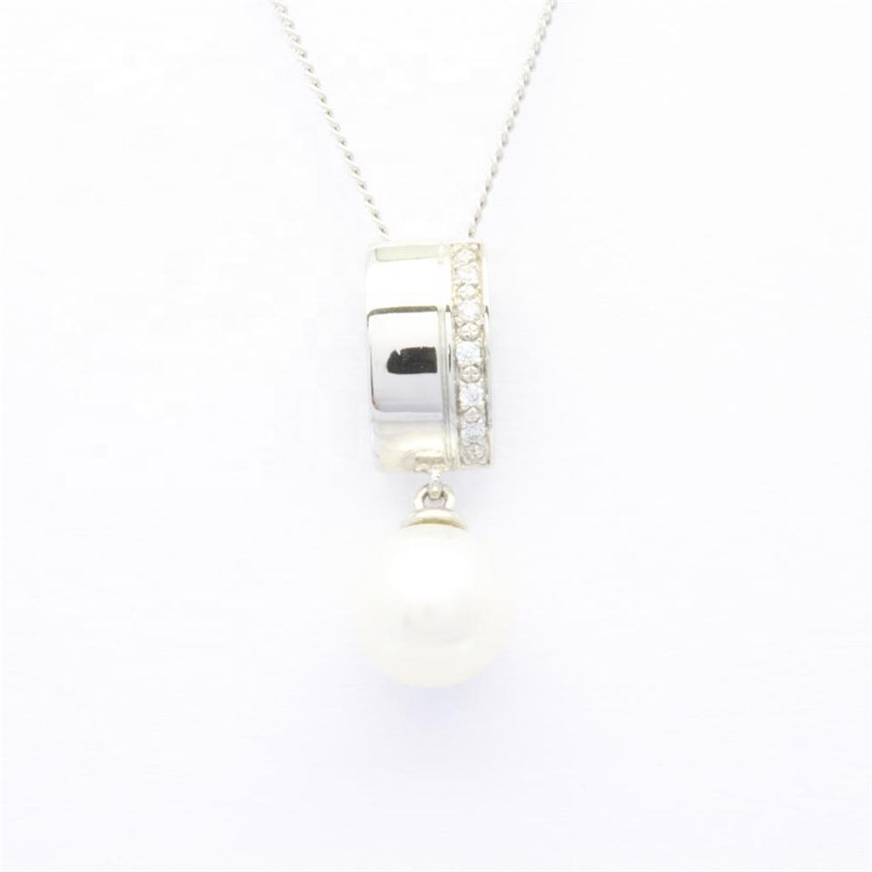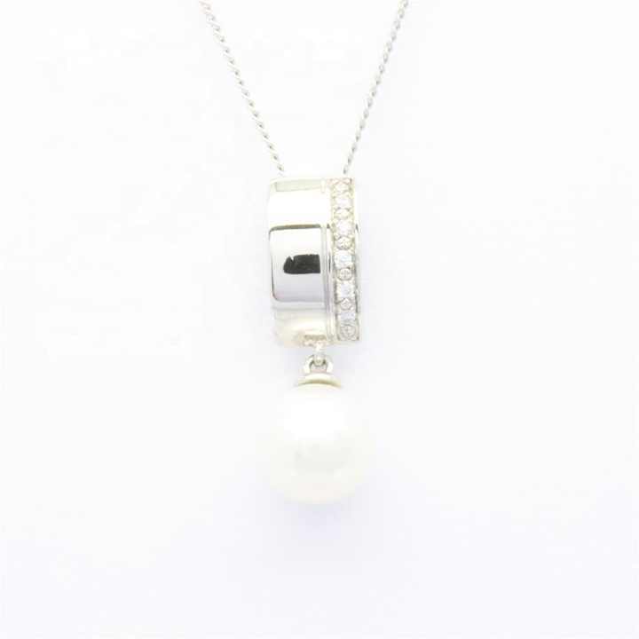 จี้เพชรแท้ทรงมันฝรั่ง 0.02 กะรัต ประดับมุก ดีไซน์คลาสสิก ชุบทอง 18K สำหรับผู้หญิง รุ่น Anniversary Best Choice