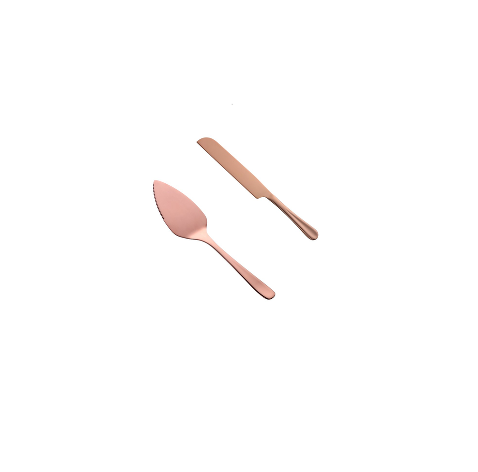 เซิร์ฟเวอร์เค้กปาร์ตี้วันครบรอบ ตกแต่งด้วยชุดมีดทองแดง ดีไซน์เรียบง่าย ผลิตจากอินเดีย
