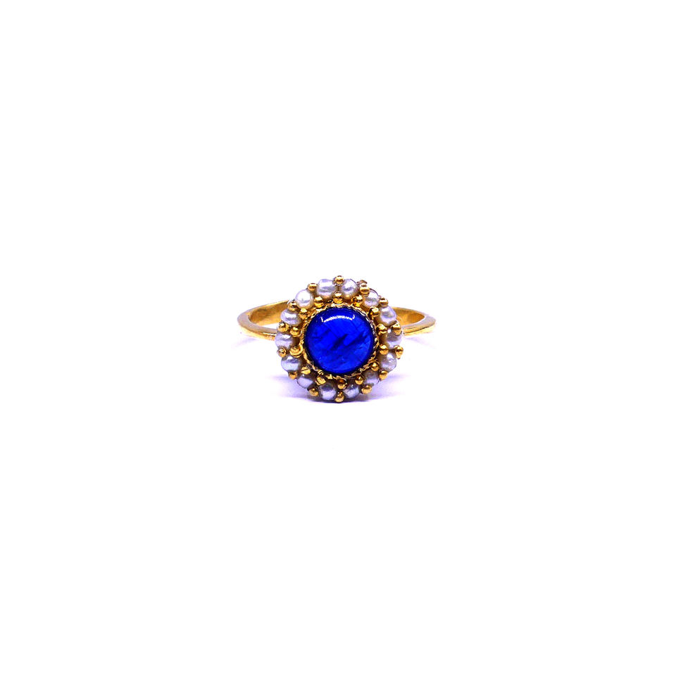 แหวนผู้หญิงประดับมุกไคยาไนต์ชุบทองด้วยเงินสเตอร์ลิง925วันครบรอบ