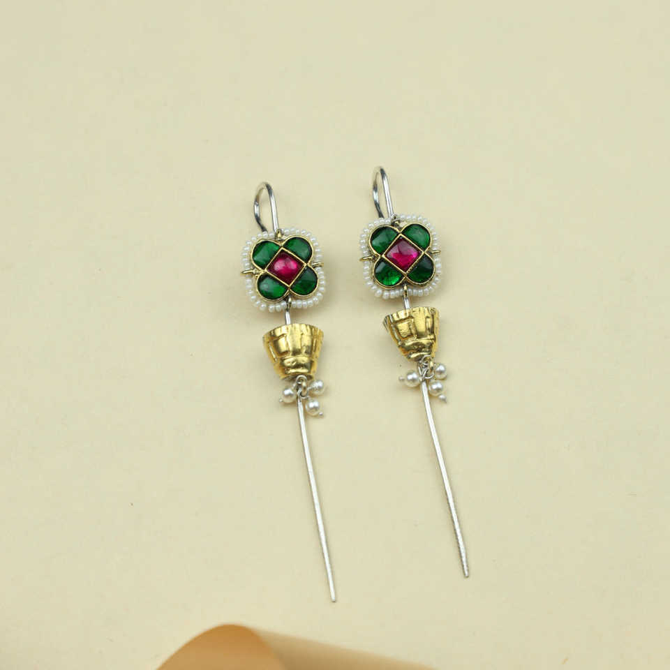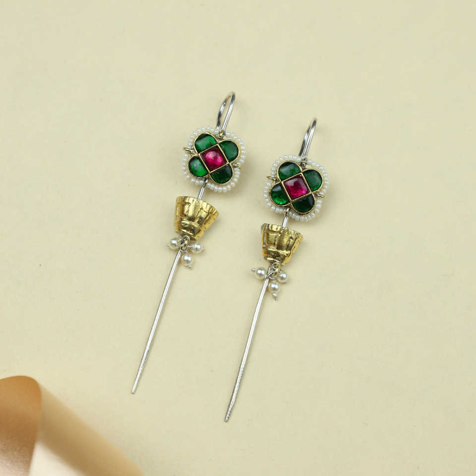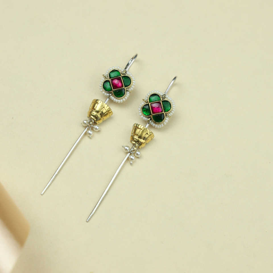 Anokhi FUSION zircon EAR EAR EAR PIN with squar Flower Motif