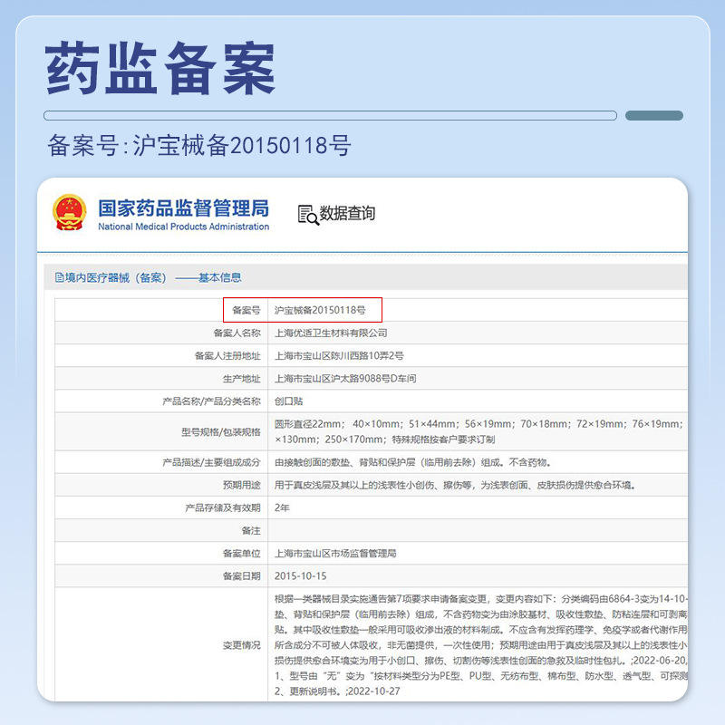 Product Registration Certificate:Shanghai Baoji Medical Device Registration No. 20150118