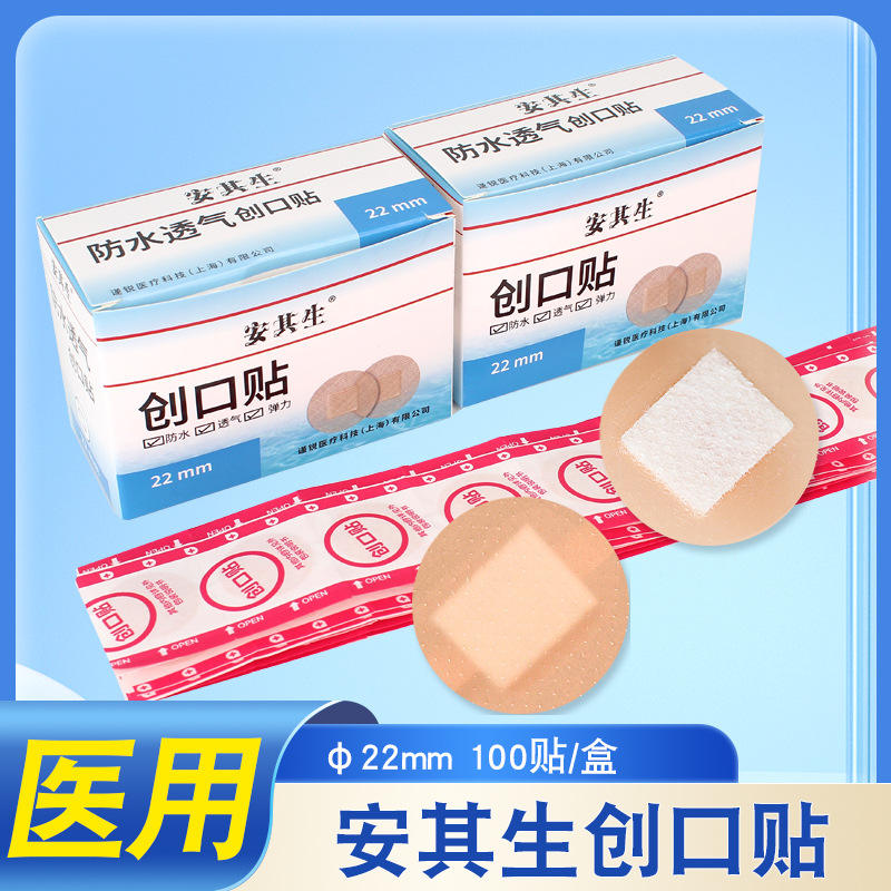 แผ่นปิดแผลอันฉิงเซิง ขนาด 22 มม. กันน้ำ ระบายอากาศได้ ผ้าพันแผลกาวทางการแพทย์ สำหรับเย็บแผลและดูแลบาดแผลเล็กน้อย